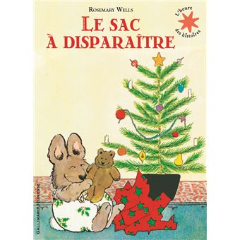 Le sac à disparaître de Rosemary Wells (Gallimard jeunesse, éd. de 2006). Damien aimerait bien jouer avec les cadeaux de ses grands frère et soeurs, mais personne ne veut essayer son ours. Est-ce qu’un sac à disparaître aura plus de succès ?