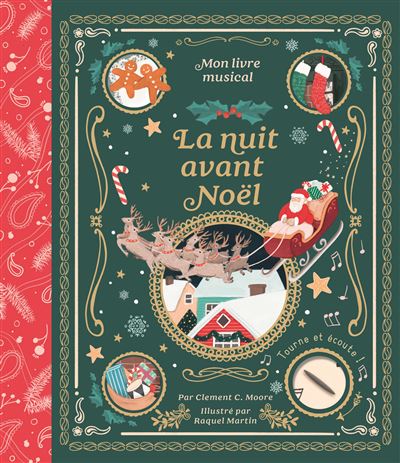 - La nuit avant Noël, d’après le célèbre conte de Clement C. Moore, illustré par Raquel Martin (1, 2, 3 Soleil, 2023) avec un boitier musical à remontoir (sans pile).