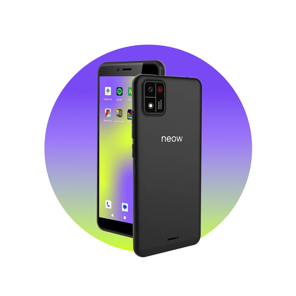 Fabriqué en France, le Neow cible les collégiens. Il combine appels, SMS et agenda, avec une interface moderne et intuitive. Pas d’accès à Internet ni à aucune application sociale, mais la possibilité de stocker de la musique, d’écouter la radio et de géolocaliser l’appareil via une application parentale. Un compromis très apprécié des familles.