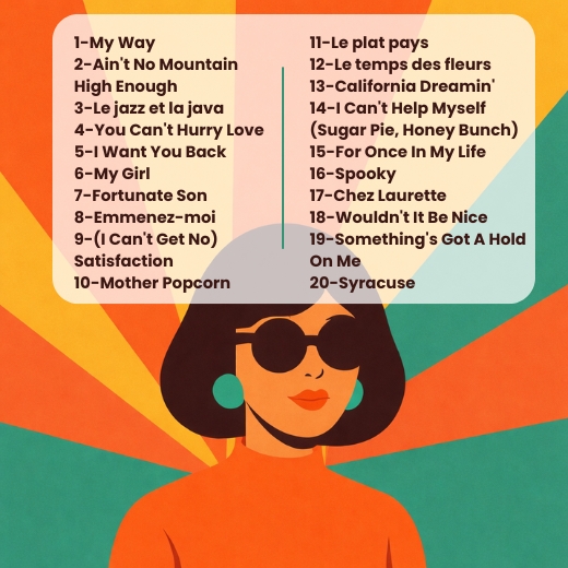 Plongez dans l’élégance et l’énergie des années 60 avec cette playlist intemporelle, mêlant soul, pop, rock et chanson française.