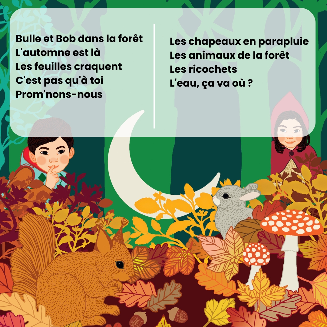 Bulle et Bob se préparent pour la rentrée et fêtent l’automne dans deux histoires en musique, tendres et rafraîchissantes.
