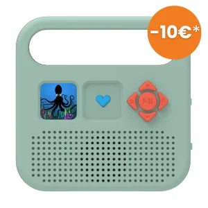 L’offre la plus généreuse du marché: le prix inclut plus de 1000 titres Radio France et Bayard Jeunesse – à transférer sur l’enceinte depuis l’application parentale